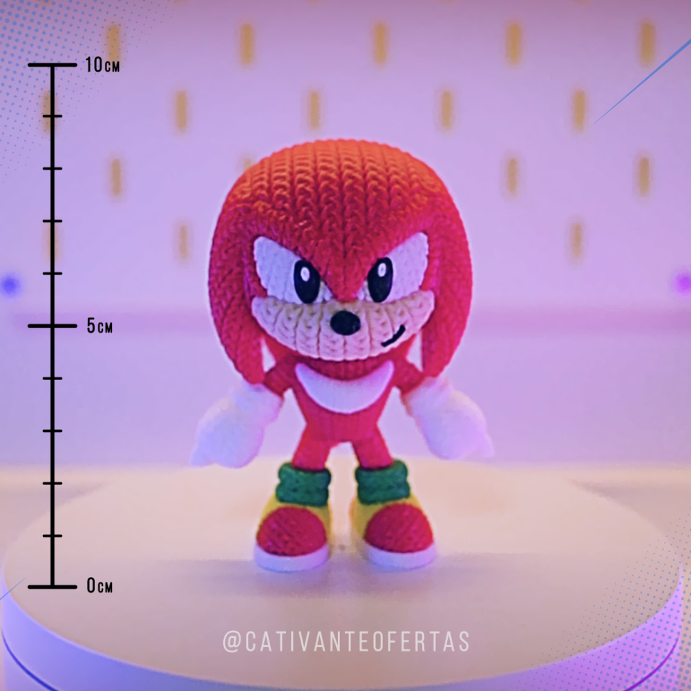 Boneco decorativo estilo crochê impresso em 3D, 10 cm de altura. Ideal para colecionadores e fãs de Knuckles.