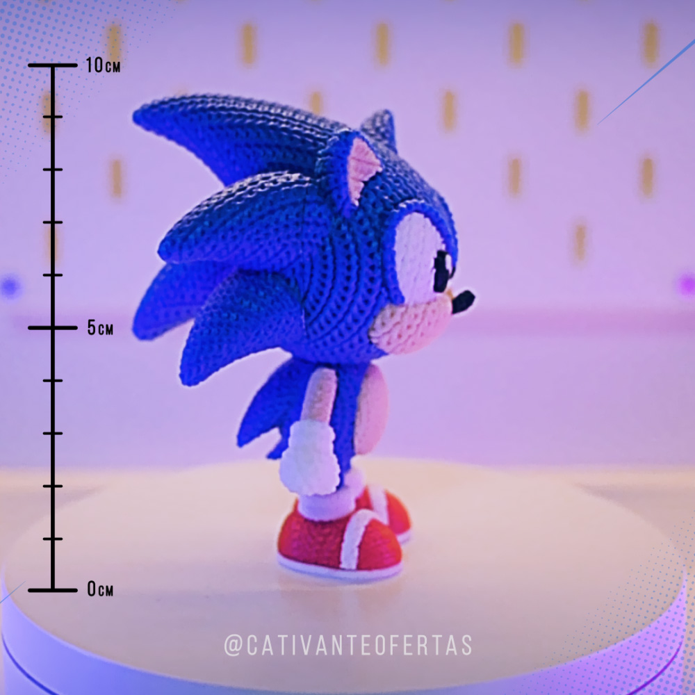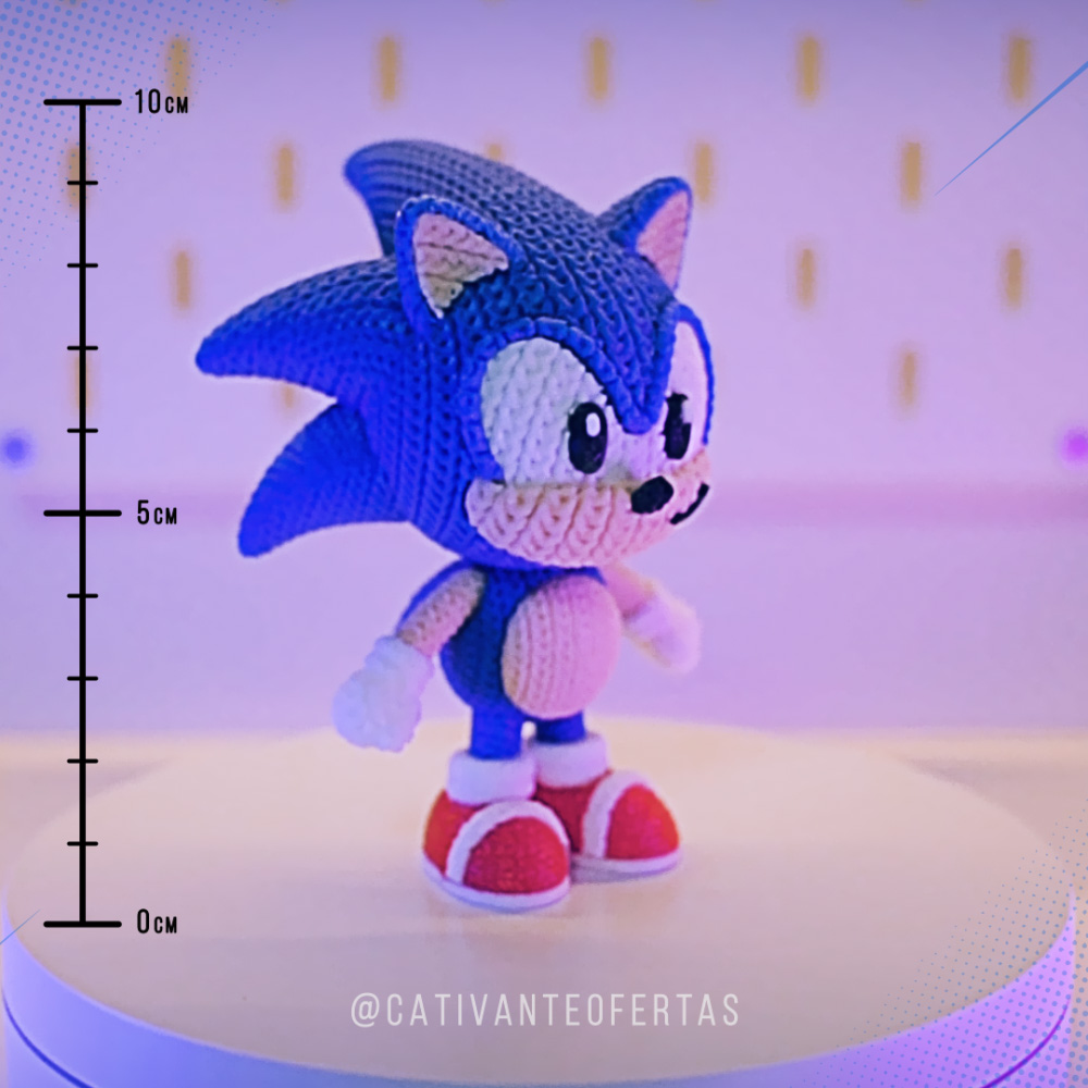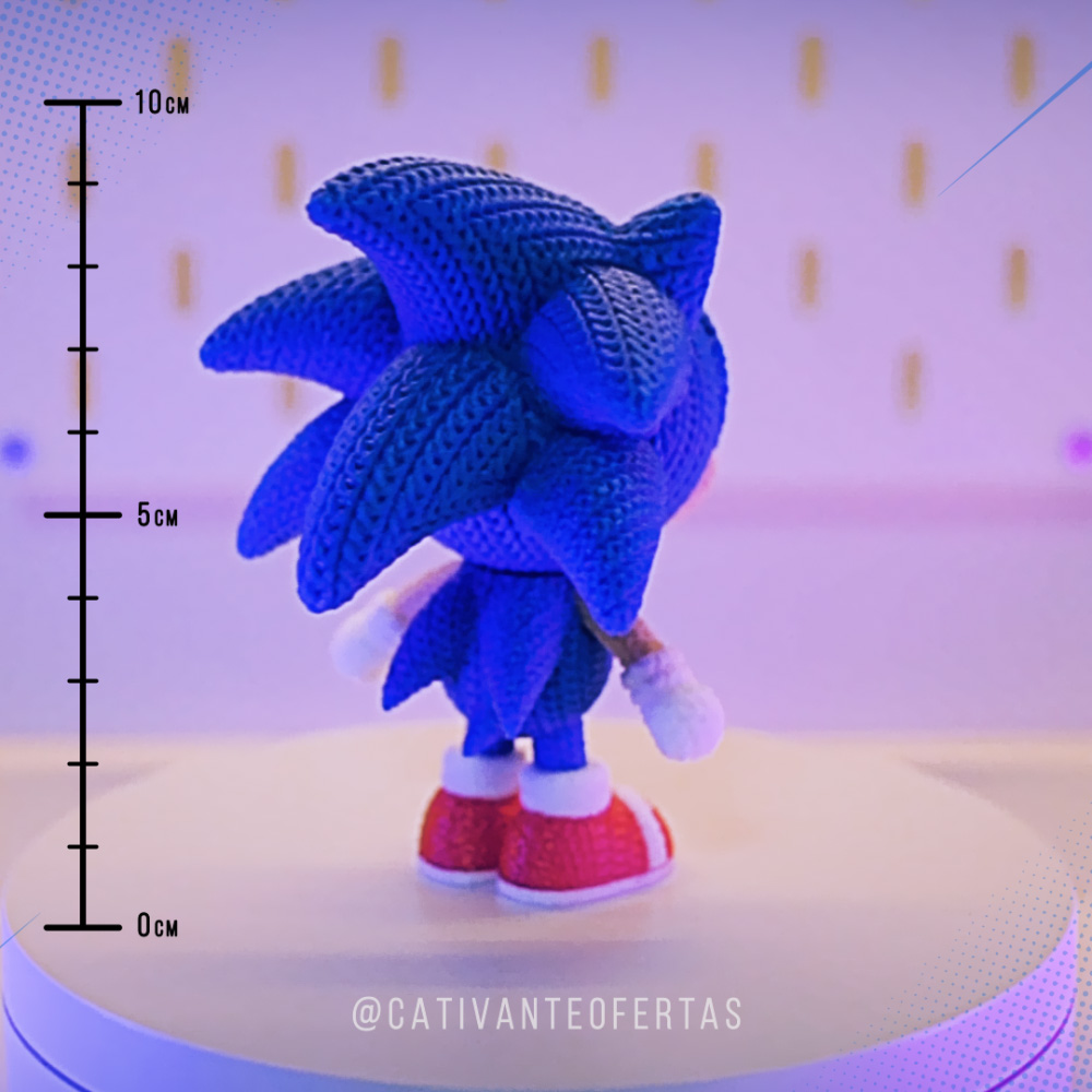 Boneco decorativo estilo crochê impresso em 3D, 10 cm de altura. Ideal para colecionadores e fãs de Sonic.